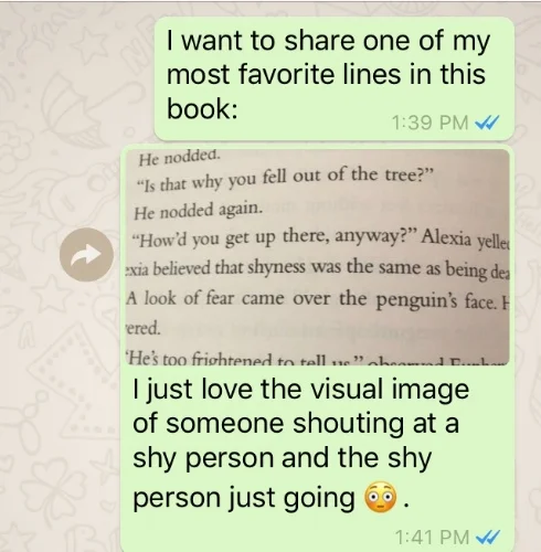 There are loads more bits just like that too, parts that make my smile no matter how many times I read this book. And it makes me cry too, which I hate. For those of you not in the know, I really dislike crying. Or rather, I dislike what comes with crying. I know crying is healthy because it’s cathartic, but I want my catharsis to be efficient, so please don’t try and comfort me unless I reach out first, in which case I need a proper cuddle. So get ready to feel things with this book.
