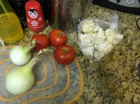 Now, about that blog title...I am so my father's daughter. I've been working on creating a new recipe, which I think I've finally nailed down: Ultimate Curry. A few years back, I cobbled together a curry recipe from a cooking demonstration I saw (which rudely did not include copies of the demonstrated recipes. If you're going to show how to make delicious food, people, you'd better include instructions for later) and some things I found on the Internet. It just looked like something yummy. I loved it! I've since found that my curry is one of those warm, comforting, restorative dishes that just makes me feel good inside and like all can be right in the world. Food, like reading, has its own brand of magic. Recently, though, I came across another curry recipe that I really liked: Shrimp Curry with Cauliflower. Now, because I am neurotic, I don't want more than one curry recipe in my repertoire, so I endeavored to combine my favorite parts of both recipes. Here is the result...