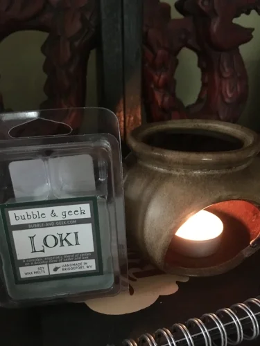 Currently burning: Loki from Bubble and Geek, as it smells like pine and woods, and I want an outdoorsy scent whilst I write this.