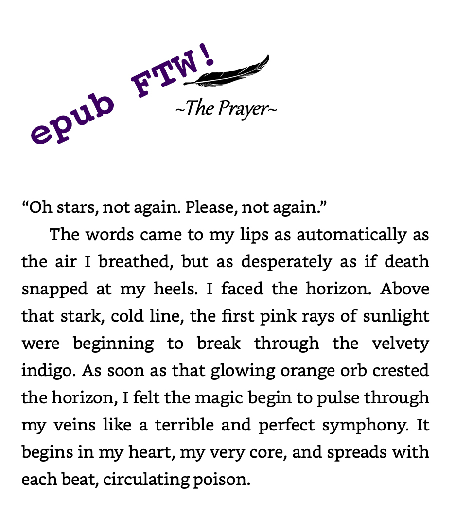 Enter the solution: epubs! Epubs are digital book files that nearly everyone uses. Epubs can be a little tricky to make until you get the hang of it. I create mine in a program called Calibre (that’s another blog entry), and I understand you can make them using Scrivener too. I’ve never done it the ol’ Scrivs, though, so I can’t speak to that. Long story short, uploading an epub file instead of a Word document allowed me to fix both the spacing and font issues.