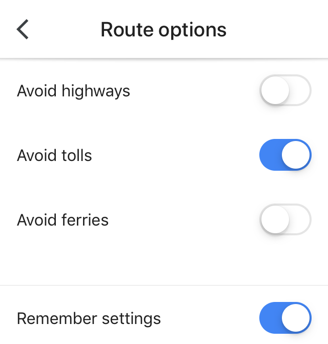 No Tolls, No Rolls! ~ If you’re driving, set your Google Maps to avoid tolls!!! Do it right this second. Don’t be like me this past weekend and pay almost $9 in tolls on the way there, forget during the weekend, and then on the way back suddenly find yourself picking through your nickels to come up with enough for a cash-only toll. Only to then have to try not to crash while changing the Google Map settings and pulling up new directions. Seriously, plot a course to somewhere else right now, click the little “…” on the side to pull up the Route Options menu, and choose Avoid Tolls. And for the love of almighty coffee, check the Remember Settings option too so you don’t have to do this again! You will be so happy you did! And it often doesn’t make a huge difference time-wise. Check out my before and after changes example below. It added all of four minutes to my route.
