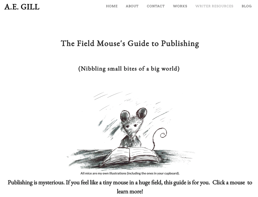 So while I’m virtually away from this blog, I invite you to check out my very smart and talented friend’s site. Specifically, her information on the traditional publishing process. A.E. Gill and I were just talking last week about how much goes into this process and how much is definitely NOT intuitive. And there are a lot of pitfalls, which you will definitely encounter if you just google “how do I get published?” So please enjoy A.E.’s adorable little field-mouse-guided tour of that process. And for those of you who are interested in possibly undertaking this journey one day, I hope this is helpful (and I know A.E. does too).
